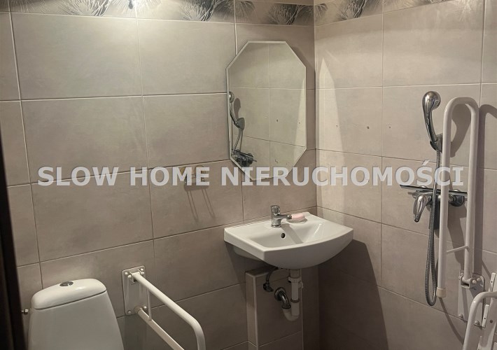 Kuchnia całkowicie jest do całkowitego remontu .Łazienka przeszła pare lat temu remont pod osobę niepełnosprawną , jest prysznic i umywalka oraz