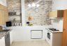 Kuchnia jest zabudowana ii wyposażona w sprzęt AGD znanych marek.