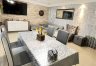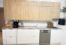 Stworzono przestronną strefę dzienną: salon z miejscem na duży stół, ogromny narożnik i aneks kuchenny z całym wyposażeniem oraz prywatną strefą: 2 sypialni, łazienka i pralnia.